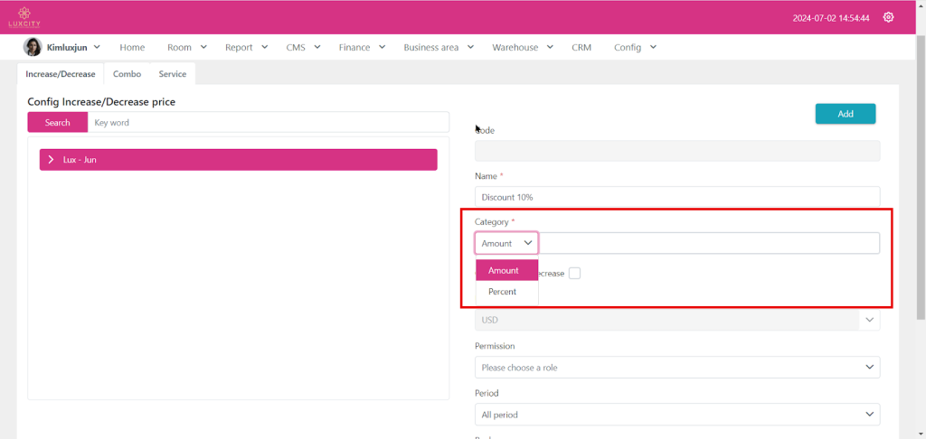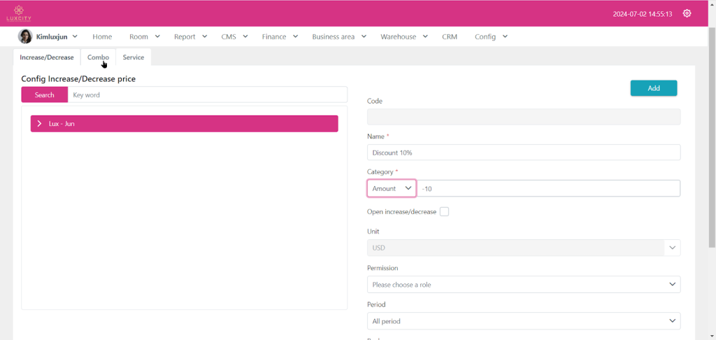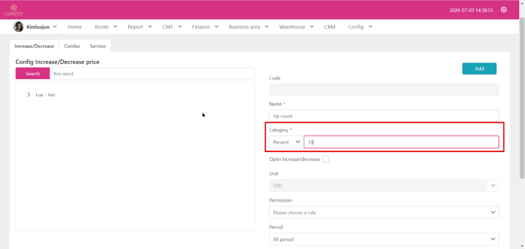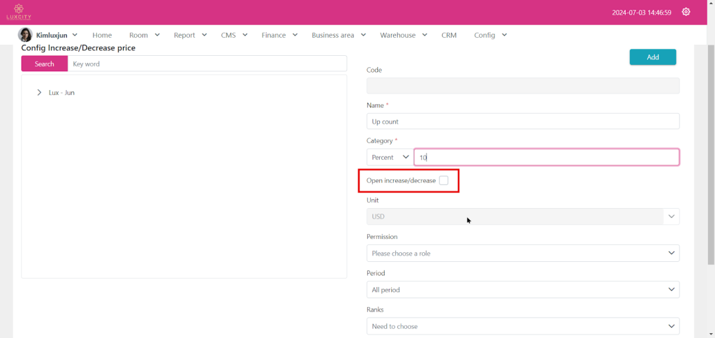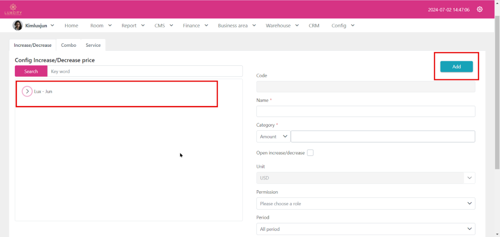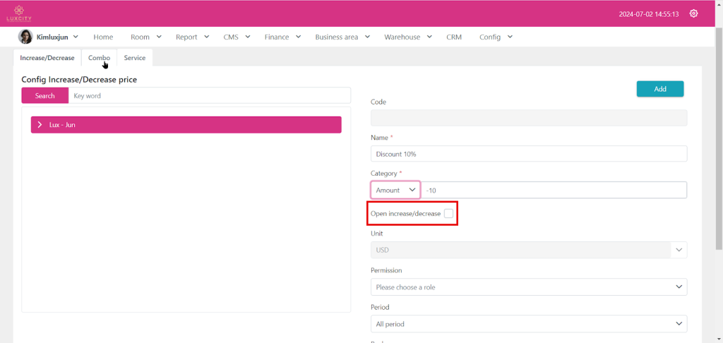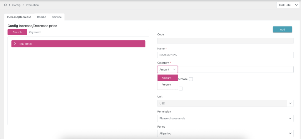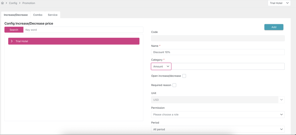 Step 1: Go to Config => Proceed to Promotion Choose Increase/Decrease and “Add”