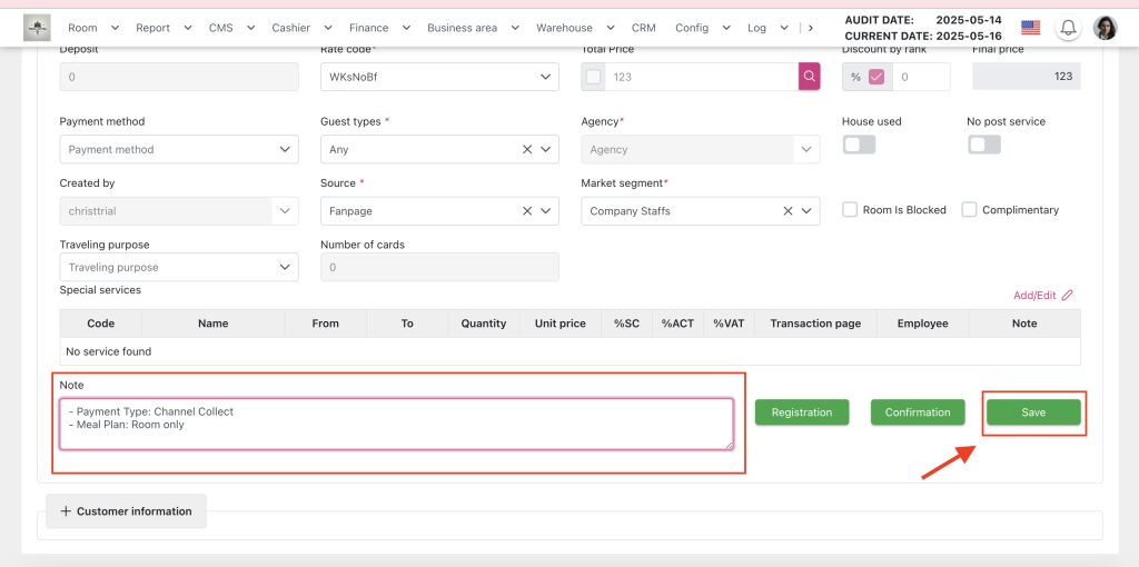 Hotel can enter/ edit/ see easily Booking’s note information in 3 tabs:
