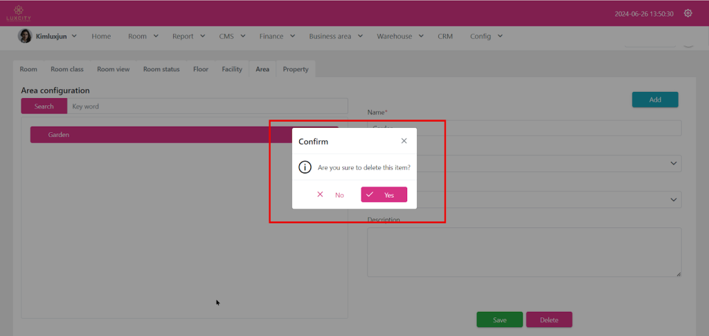 • The system will ask you to sure delete this item. =>”Yes”