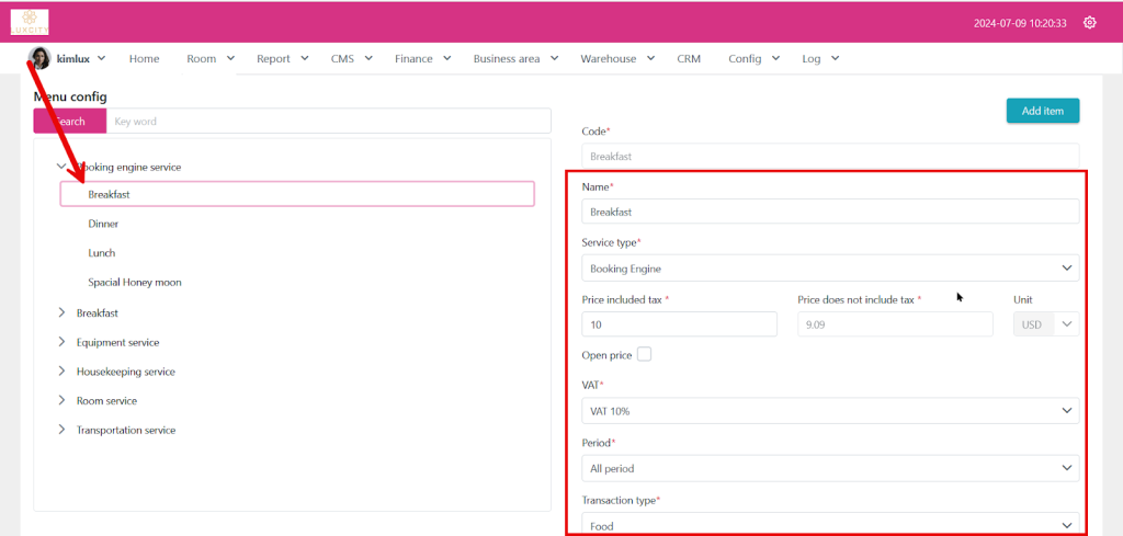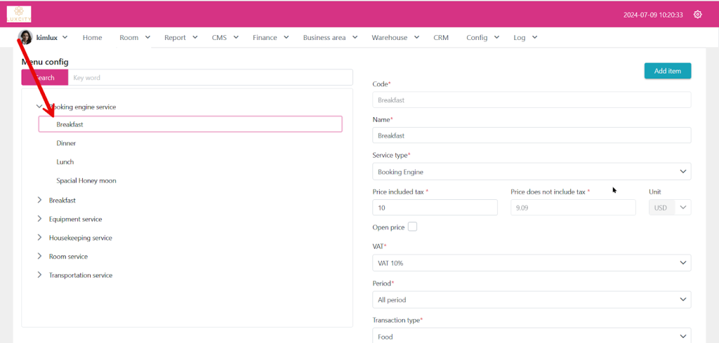 Go to config and proceed to promotion funtion and choose “Breakfast”