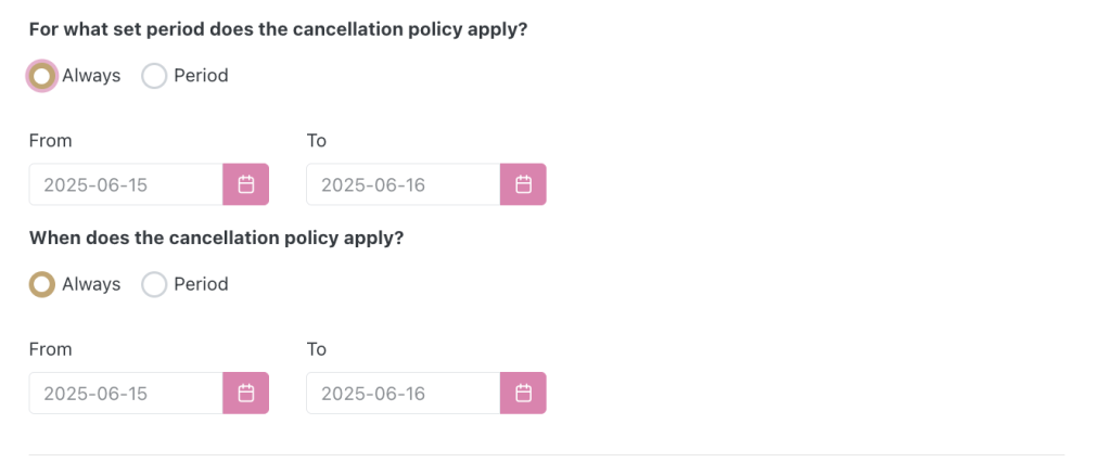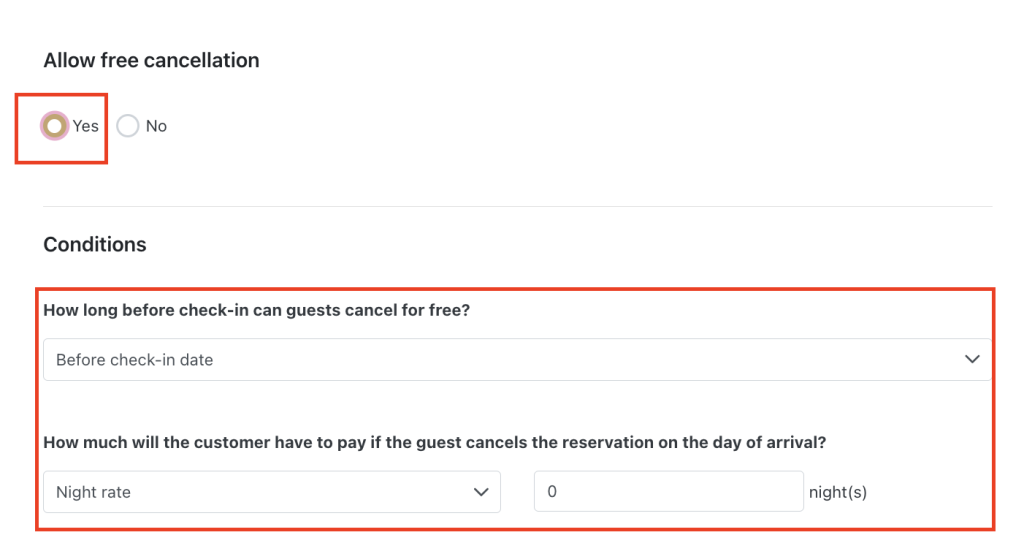 - Allow free cancellation: Select “Yes” radio mean “During what period of time can customers cancel for free?”