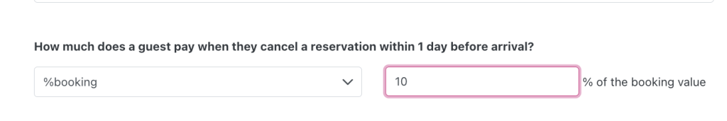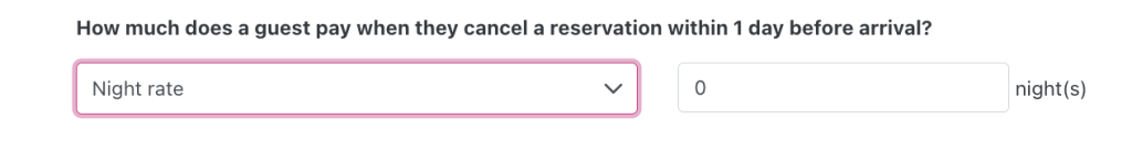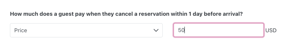 - Select items “1 day before check-in date”, “2 days before check-in date” , “3 days before check-in date” , “7 days before check-in date” → Display droplist with label “How much does a guest pay when they cancel a reservation within x days before arrival?”. (2)