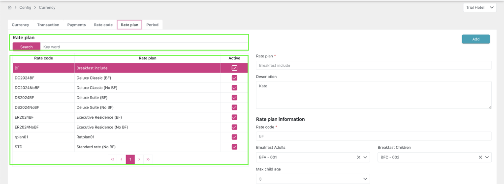 Step 1: Search in bar or scroll down in table to find then select Rate plan