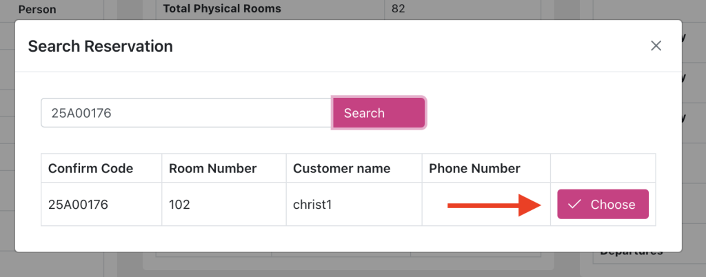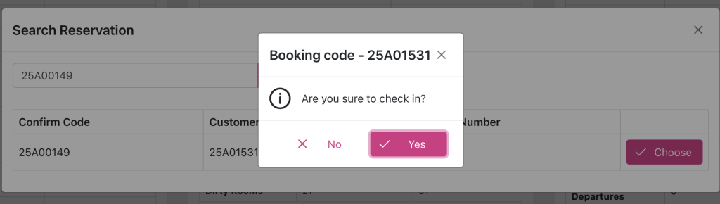 Step 2: Enter the confirm code of the booking to checkin > Click Search button
