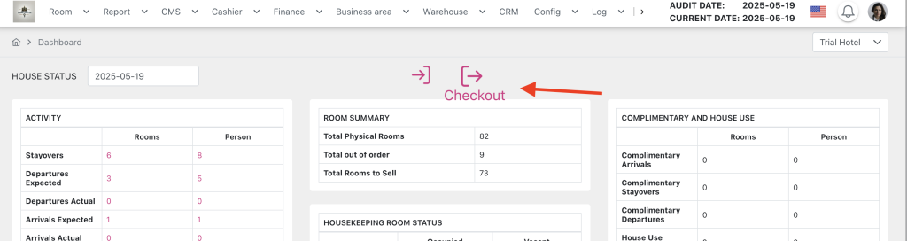 At Home screen, hotel can check-in/ Check-out for bookings have arrival date or departure date is current day quickly instead of accessing Room menu > List reservation.