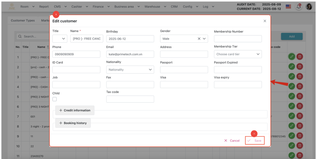 - Step 2: Make changes if necessary on the Edit customer popup (2).