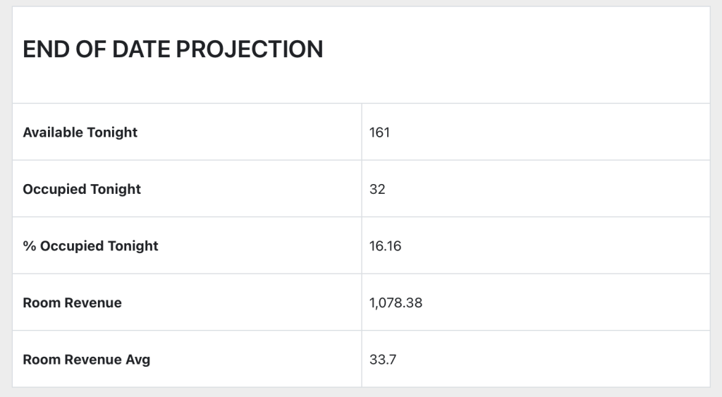 3. % Occupied Tonight: Calculated using the formula: Occupied Tonight / (Total physical rooms – OOO) * 100