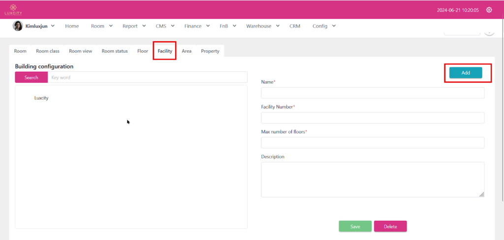 We can delete Facility Unless the facility not yet Create floor and room. Procced on facility and delete the iteem.