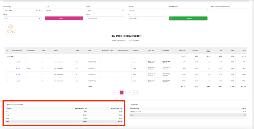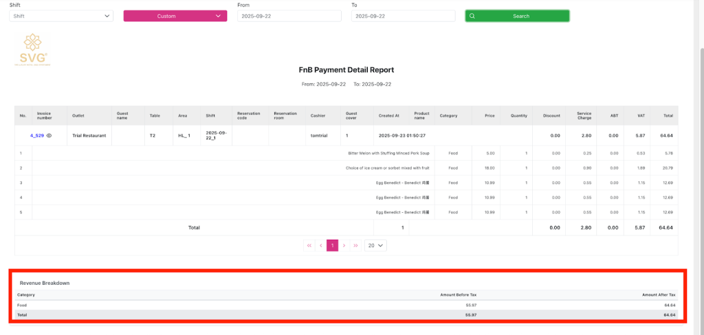 - HM -3978 [UPDATE] Report - Breakdown Revenue for FnB reports