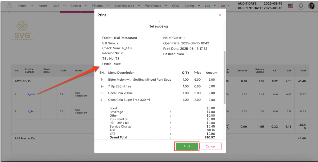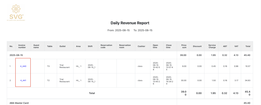 - HM-4059[UPDATE] Report - Allow to view final bill in FnB Revenue report