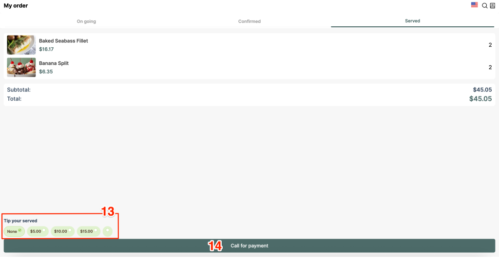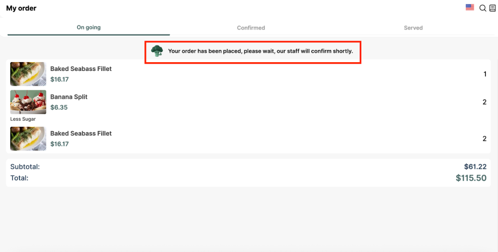 - Served: Order is delivered