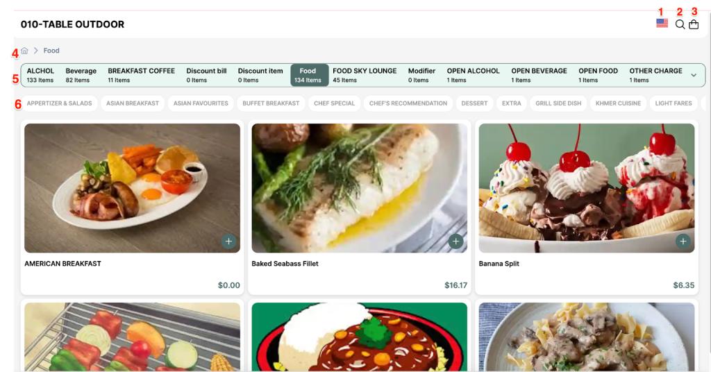 - Only display food categories that have an Active status.