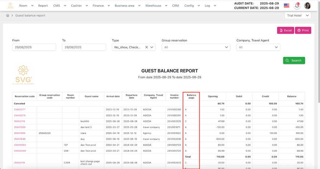 After user changed page successfully, report will re-update current Page for Balance Page column.