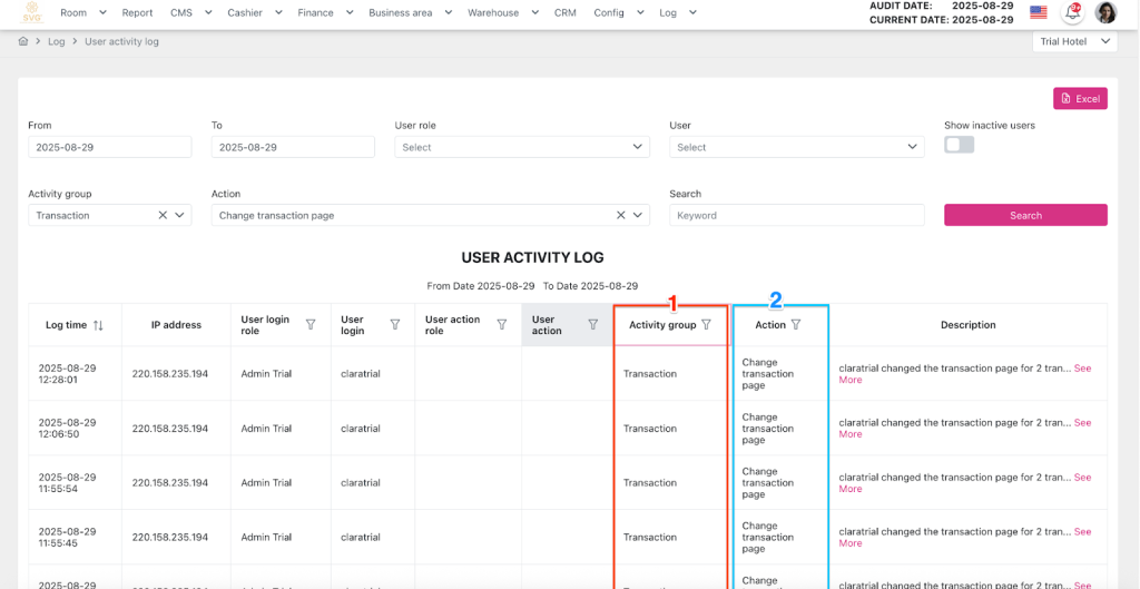 - Search Checkout/Cancel/No-show booking by filtering fields