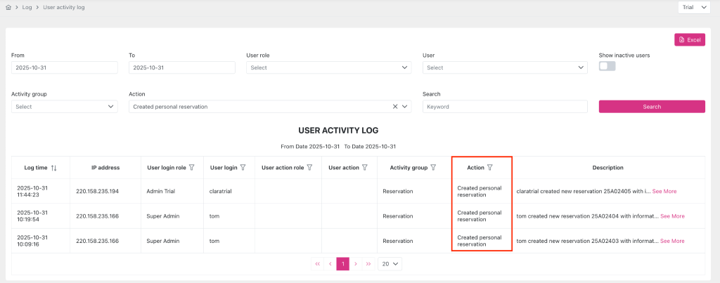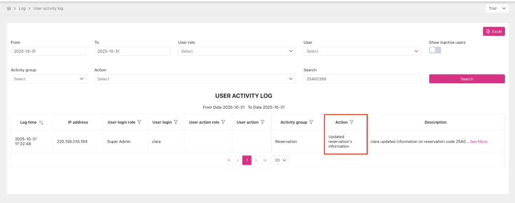 2.2. Update the “Reservation list” template when the user exports from the List reservation screen