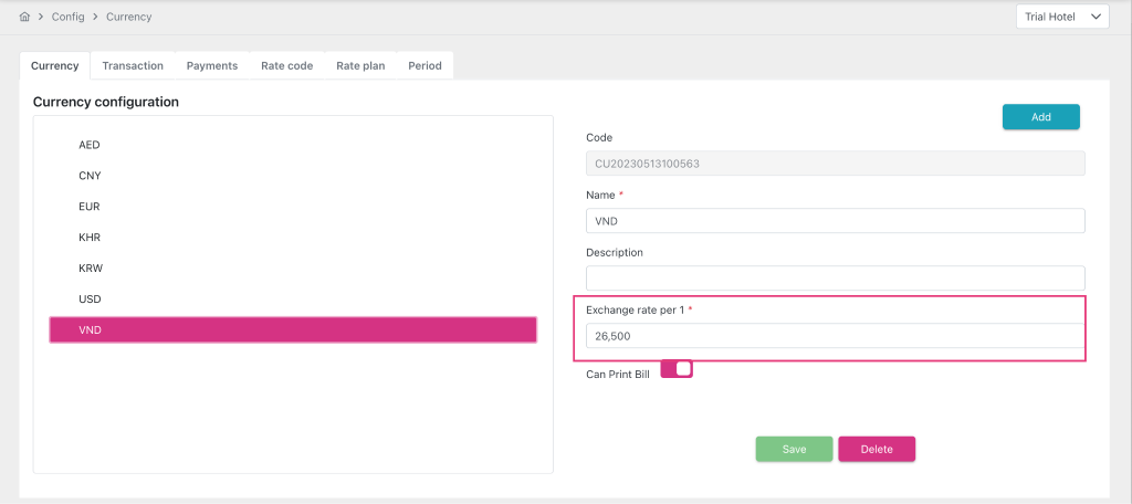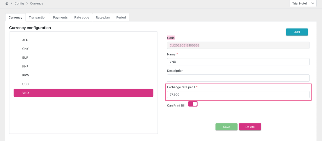 Update: payment stores the exchange rate at the time of creation at Currency tab > Config Each, so if the exchange rate in the system changes later, old payments with currency is VND will retain their old exchange rate and will not be changed according to the new configuration