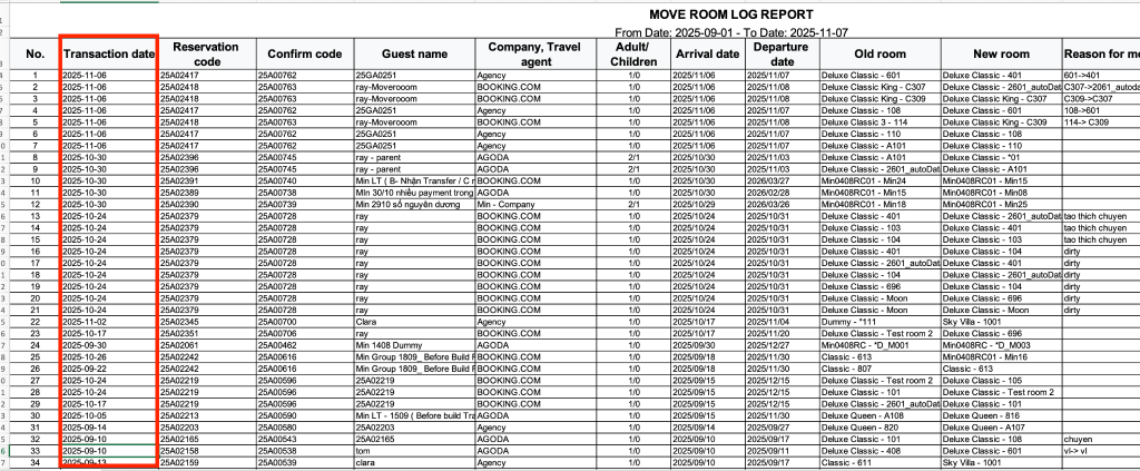 HM-5851 : [PRO] – Add column Transaction date in Report Move room log report