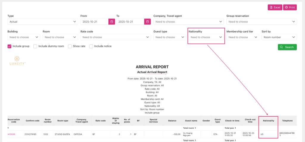 HM-5954 [UPDATE] Arrival report – add column Nationality