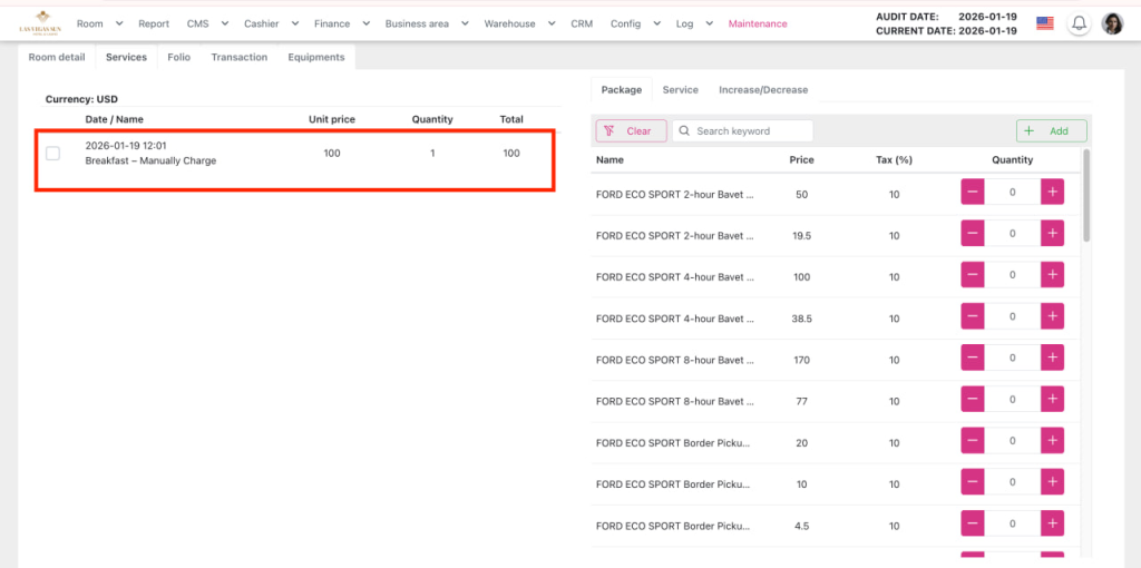 - Users are not allowed to edit the open price for services already added to a booking with reservation type = “Cancelled”/ “Checkout”/ “Noshow”.