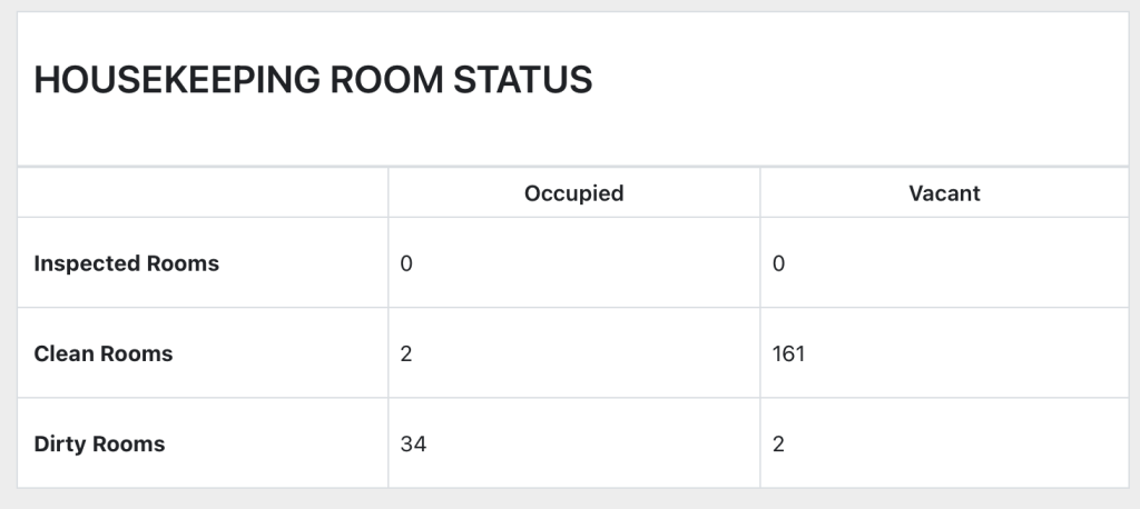 - Inspected Rooms: Rooms that have been cleaned and inspected.