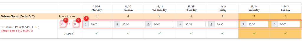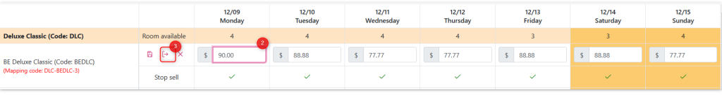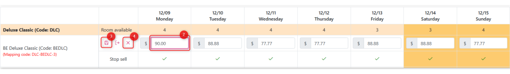 Step 2: Select a specific date that hotel does not want to sell on OTA channel by clicking check icon (2)