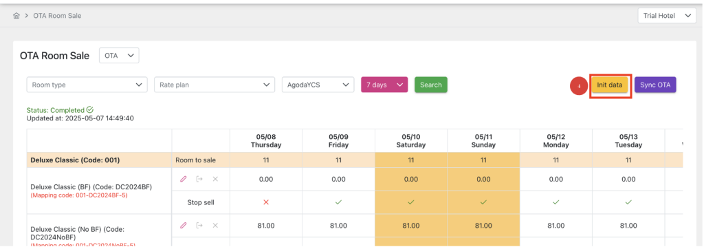 Step 4: Click init data button (4) to sync the latest data on OTA channel