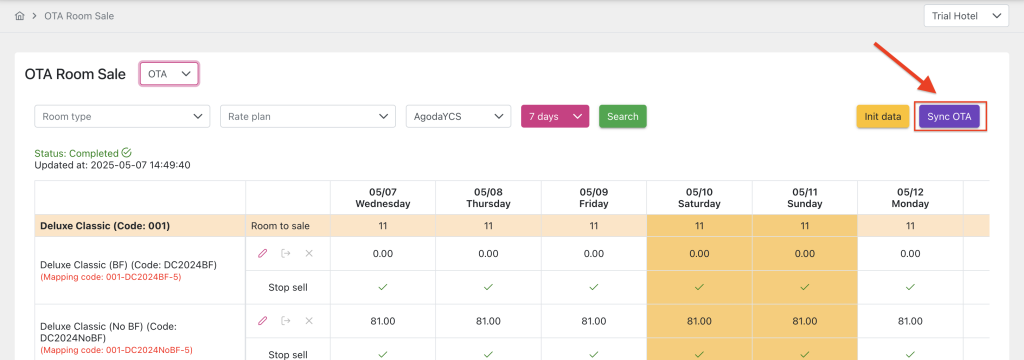 Step 5: Click Sync OTA to push changed data to Staah Page, then Staah will push to OTA channel.