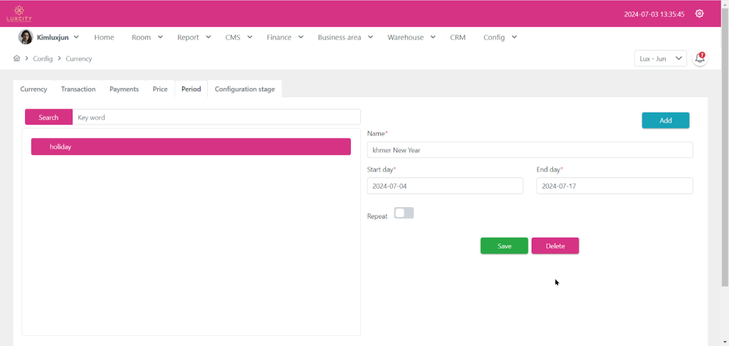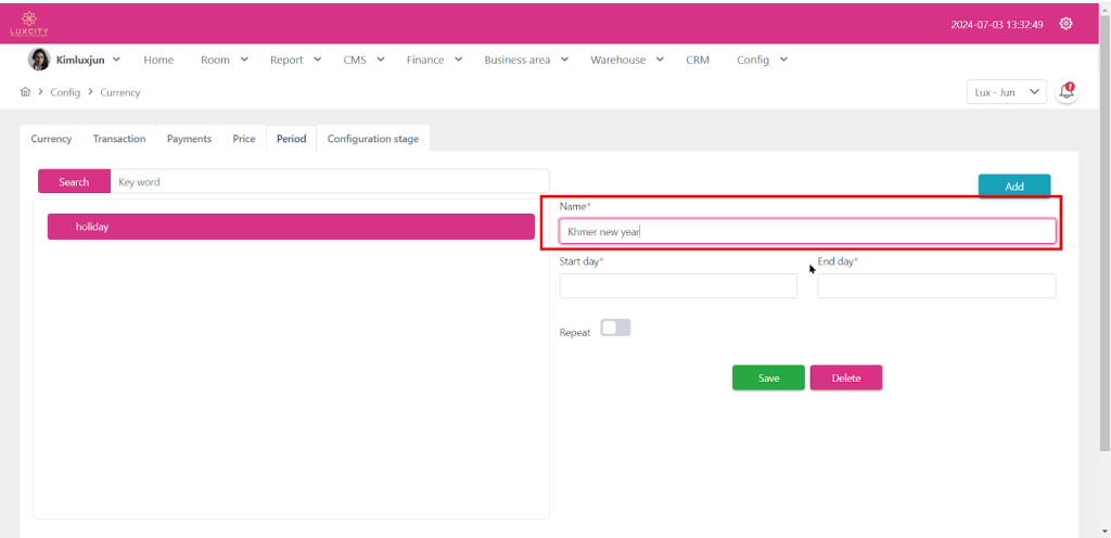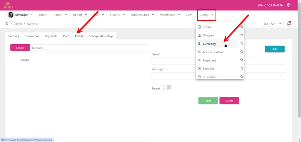 Step 1: Go to config proceed to Currency and choose “Period”