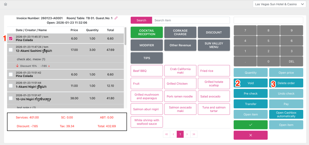 Void button (2) is for void the dishes.