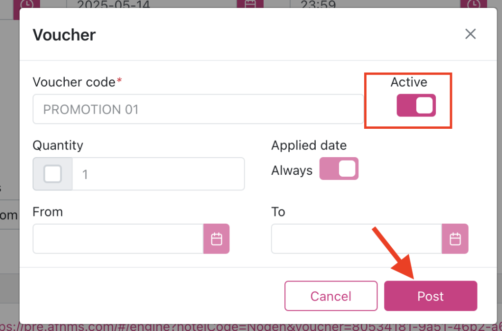 - Active Toggle: Activity status of Voucher