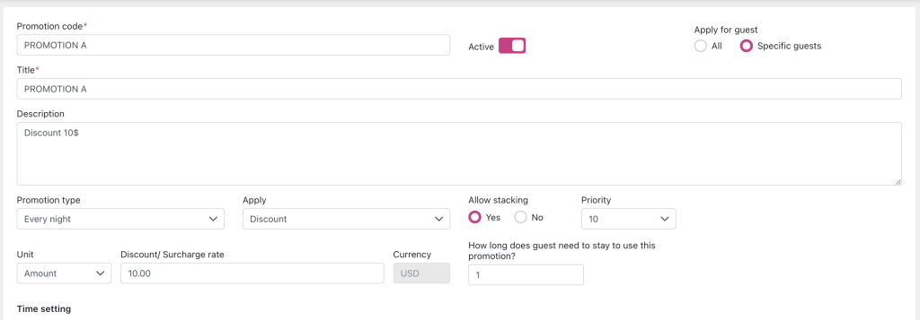 - Apply for: All, Specific guests