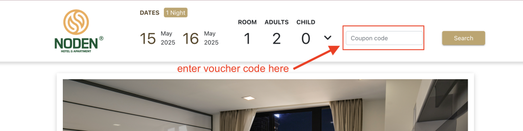- Copy link in voucher table by clicking the Copy icon and send to guest access the BE website > the voucher code will be displayed availably in Coupon code field for guest uses.