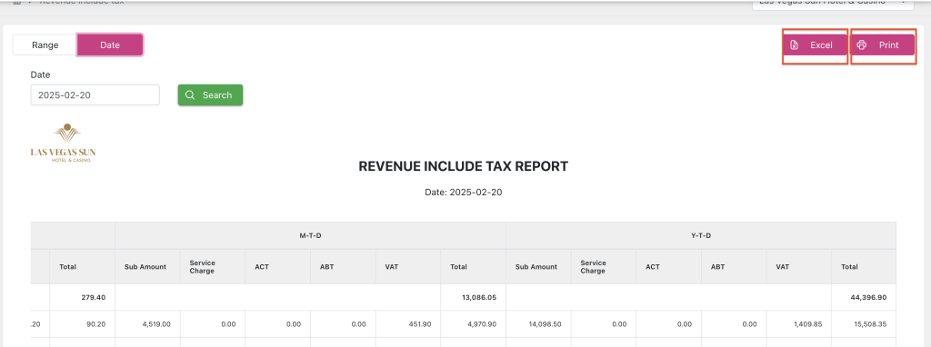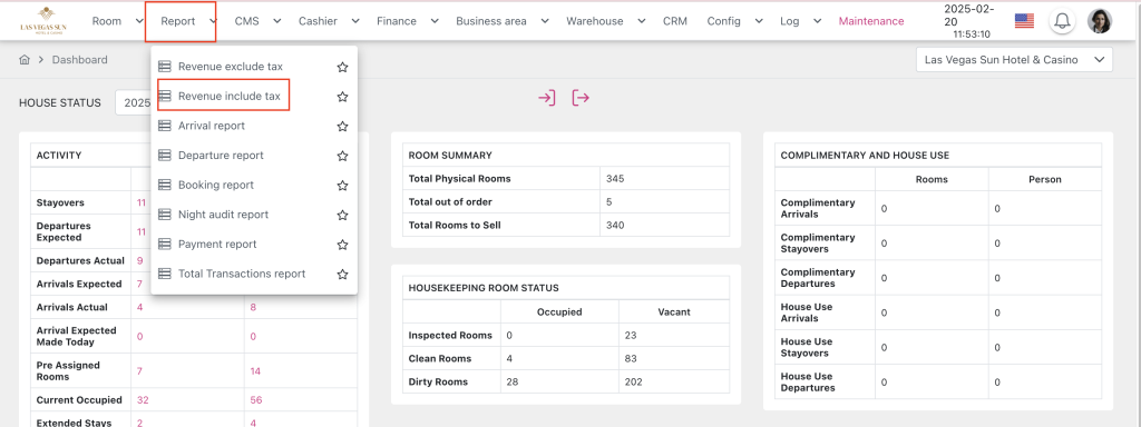 Navigation: Click on the Report menu in the top navigation bar > Select Revenue include tax report