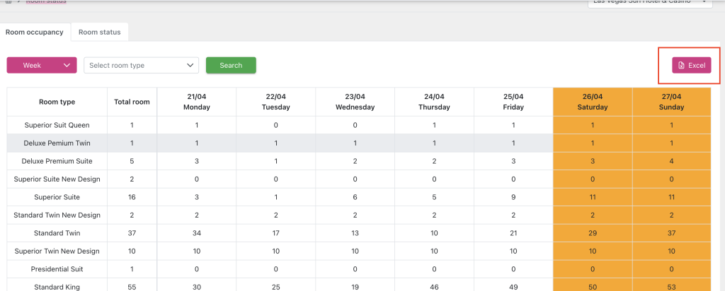 - Room occupancy function it show all the room type, total room, Total out of order, Total stay over room, Total vacant ready, Total occupied room, Total available, Room occupancy every day.