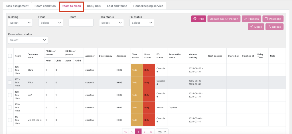 Once the task is completed, it will be assigned back to the supervisor for room inspection