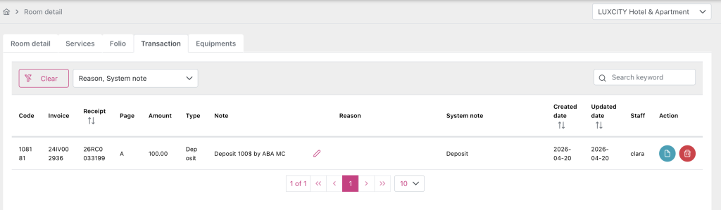 - HM-5851 : [PRO] - Add column Transaction date in Report Move room log report