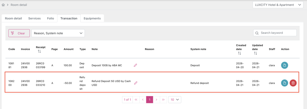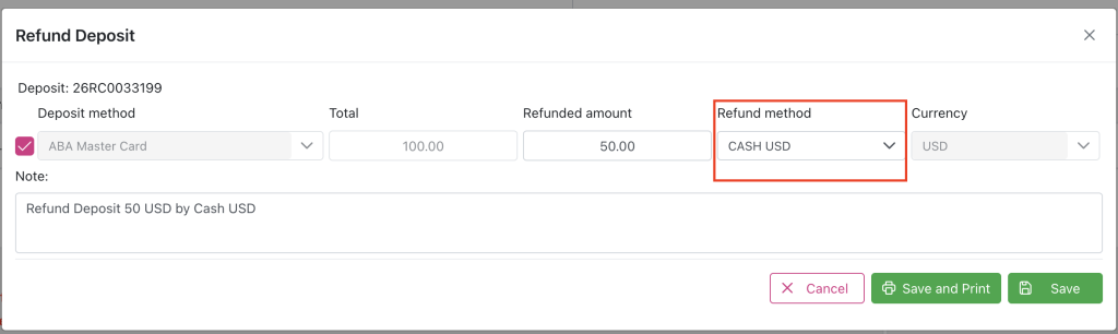 Currency of Refund deposit must be same as Currency Deposit: USD